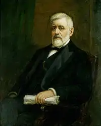 Harrison was defeated in the November 1892 election by former president Grover Cleveland, a Democrat, who returned to the White House in March 1893. President Harrison left office proclaiming the nation's prosperity, but in May, amid economic uncertainty that caused many people to convert assets into gold, the stock market crashed, and many firms went bankrupt. The depression that ensued became known as the Panic of 1893.[16] Among those who became insolvent in 1893 was a McKinley friend, Robert Walker.[17] McKinley had co-signed promissory notes for Walker, and thought the total to be $17,000. Walker had deceived McKinley, telling the governor that fresh loans were renewals of old ones, and the total indebtedness, for which McKinley had made himself liable, was over $130,000. That sum was beyond McKinley's means, and he planned to resign and earn the money as a lawyer.[18] He was rescued by Hanna and other wealthy supporters, who raised the money to pay the loans.[19] According to McKinley biographer Kevin Phillips, the governor's backers "paid off the cosigned notes so that McKinley—by now, the probable next president—did not need to go back to practicing law".[20]