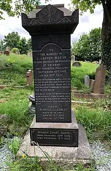 - ↑ "L Lapper Morse Died: 10 Sep 1913 BillionGraves Record". BillionGraves. Retrieved 24 May 2022.