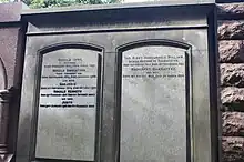 He is buried in Dean Cemetery in Edinburgh against the north wall, of the Victorian north extension, near the north-west corner.
