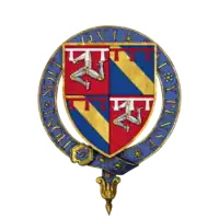 He was created Earl of Wiltshire in 1397 and became Lord High Treasurer in 1398.[5] He became effective head of the government in Richard's absence.[6] He benefitted from the confiscated estates of Thomas de Beauchamp, 12th Earl of Warwick, who was kept for a time under his care in the Isle of Man, and of John of Gaunt; he also accumulated control of a number of strategic castles.[7] He was left 2,000 marks in King Richard's will in April 1399.