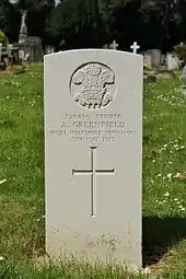 CWGC headstone in Rose Hill Cemetery, Cowley, Oxfordshire of an RWY private who died in 1919 six months after the Armistice