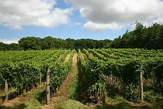 The chalk limestone soils of Sussex, Kent and other portions of Southern England are suitable for growing the grapes used to produce sparkling wine, and particularly on south-facing slopes, the climate, at least in recent years, is warm enough.[1] At the last official count, the Wine Standards Board reported that there were just over 450 vineyards producing wine throughout England.[2] The largest of these is Chapel Down in Kent, as of mid-2018 when they became the largest winery and vineyard in England.[3]