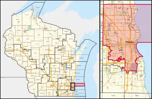 Wisconsin’s congressional districts are an example of partisan gerrymandering, in this case in favour of the Republican Party.[1]