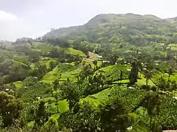 Agriculture is the livelihood for more than 90% of the population in the rural areas. Animal husbandry is complementary to crop production, and the livestock population of Wolayita with estimated standing populations of 685,886 cattle, 87,525 sheep, 90,215 goats, 1951 horses, 669,822 poultry and 38,564 bee hives.[35] Farmers are well known for the production of livestock, predominantly cattle for their organic beef and butter (Million, 2003). They have long tradition of fattening oxen distinctively practiced using local/home based feed supplement/concentrate (cereal grains, root and tuber crops), household leftovers, grass)(Takele and Habtamu, 2009). The Sodo milkshed is also one of the areas with a strong potential to achieve growth in milk production. Maize, haricot bean, taro, sweet potato, enset, banana, avocado, mango and coffee are the major crops with tremendous benefits to smallholder farmers’ in Wolaita and surrounding areas (CSA, 2020). Cassava is also flourishing nowadays. Mixed farming involving the production of cereals, root crops, Enset, and coffee are practiced. Enset is an essential element in Wolayita food economy and acts as a staple, or co-staple, food. Where land is very scarce and consequently where cereal harvests are low, high yielding Enset offers some opportunity for food security. Enset is also popular because of its drought resistant properties.[36]