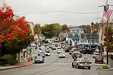 The main village of Wolfeboro is located at the head of Wolfeboro Bay on Lake Winnipesaukee, at the junction of New Hampshire routes 28 and 109. Wolfeboro Falls is just 1 mile (2 km) to the north along Routes 28/109.