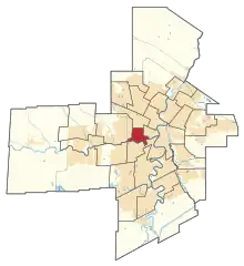 Wolseley is bordered to the east by Fort Rouge, to the south by River Heights, to the north by Minto, and to the west by St. James. The University of Winnipeg is located in the northeast corner of the riding. The Legislative Assembly of Manitoba is located at the meeting point of Wolseley and Fort Rouge.