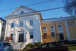 The Woman's Club of Fall River is a historic building at 1542 Walnut Street in Fall River, Massachusetts. It was originally constructed in 1897 and remodeled in 1925 in the Colonial Revival style, by local architect Maude Darling Parlin, a graduate of the Massachusetts Institute of Technology. Notable Colonial Revival features include the projecting entrance pavilion, which has a fully pedimented gable with oriel window, Corinthian pilasters separating the baysm and a pedimented entry with transom window.[2]