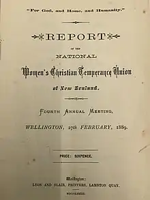 13. 1 2 3 Dalziel, Raewyn. "New Zealand Women's Christian Temperance Union 1885 –". New Zealand History. New Zealand Ministry for Culture and Heritage. Retrieved 28 March 2021.