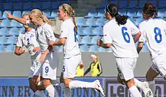 ![]() Margrét Lára Viðarsdóttir scoring against Serbia in 2009. | |