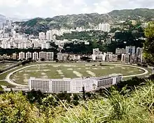 Happy Valley (Chinese: 跑馬地) is an upper-income residential area in Hong Kong, located on Hong Kong Island. The area is bordered by Caroline Hill to the east, Jardine's Lookout to the south, Morrison Hill to the west, and Causeway Bay to the north. Administratively, it is part of Wan Chai District.