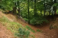 The fort is situated on a high point of Woodbury Common, at approximately 185 metres (607 ft) above sea level, in a commanding position with views up and down the Exe Estuary and across Lyme Bay in both directions. The structure is a prehistoric military type of earthwork.[1]