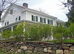 The main farmhouse is a combination of three structures erected during different eras. The main (west) block, closest to the road, is a two-and-a-half-story three-by-two-bay gable-roofed clapboard-sided 28-by-25-foot (8.5 by 7.6 m) unit with wraparound veranda on the south and west sides. All the windows have louvered shutters, with those on the main block larger than the other two sections. The roof has patterned cement-asbestos shingles and a brick chimney.[1]