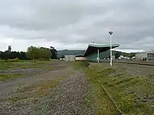 Physically, Woodville remains largely intact, having retained its station building, platform, balloon loop, loading bank, goods shed, and some of its crossing loops and sidings. The local Rotary Club, with the assistance of the Rail Heritage Trust of New Zealand, spruced up the station building in the mid-2000s for the benefit of excursion trains.[14] The station is owned by KiwiRail but is currently untenanted. The local community is investigating options for restoring the building and future uses for it.[15]