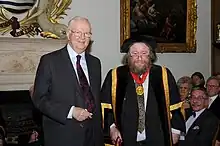 Geoff Egan (right) as Master of the Worshipful Company of Arts Scholars