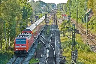 The Wunstorf–Bremen railway is one of the most important lines in the German state of Lower Saxony. It connects the port city of Bremen via Verden an der Aller and Nienburg to Wunstorf, where it connects with the line to Hanover. The 122.3-kilometre-long (76.0 mi), twin-track main line is continuously electrified. The maximum speed is 160 kilometres per hour (99 mph), the maximum axle load is 22.5 tonnes (50,000 lb) and the line is rated as class D4 (the highest class) in the German system of track classification. It was opened on in 1847.