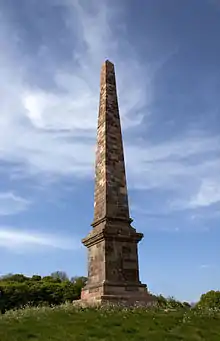 The obelisk is a Grade II* listed building.[3] It is 84 feet (26 m) high,[4][5] and can be seen for many miles around,[3] as far as away as Shropshire,[4] and the hill if not the monument on its summit from the Malverns. It was commissioned as a landscape feature in 1758 by an illegitimate half-brother of the Lyttelton family at nearby Hagley Hall - Admiral Thomas Smith, who himself lived below the hill at Rockingham Hall.[6]