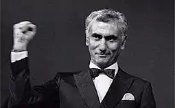 ![]() Güney raises his fist while accepting the Palme d'Or award at the 1982 Cannes Film Festival. | |