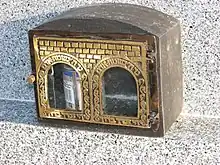 The use of a yahrzeit candle is a widely practiced custom, where mourners light a yahrzeit candle that burns for 24 hours, on the anniversary of the death on the Hebrew calendar.[3] Many Jews who are otherwise unobservant follow this custom.[3] It is customary to light the candle inside one's home, or near the grave of the deceased.