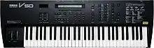 The Yamaha V50 is a hybrid music workstation introduced in 1989. It combines a sequencer, rhythm machine, an FM synthesis-based sound module and a MIDI keyboard.