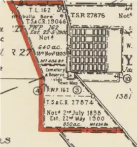 - ↑ County of Irrara, Western Division, Land District of Bourke, Darling Shire / compiled, drawn & printed at the Department of Lands, Sydney, N.S.W (Department of Lands, Sydney N.S.W, 1964).