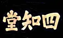 Yang clan of Hongnong refer to themselves as "Yang of the Hall of Four Wisdoms (楊四知)". The "Hall of Four Wisdoms (四知堂)" refers to a story concerning Yang Zhen (楊震), an official of the Eastern Han Dynasty (206 BC - 220 AD), and known for his erudition as well as moral character. When a man named Wang Mi (王密) visited Yang Zhen at night and attempted to bribe him 10 catties of gold, Yang rejected the gift. Wang Mi persevered, saying that nobody would know. Yang Zhen famously retorted "Heaven knows, Earth knows, you know and I know. How can you say that nobody would know?" Descendants of Yang Zhen adopted the "four wisdoms", or "Si Zhi (四知)" as the title of their clan hall. Some Yang family clan halls in various parts of China still carry this name.[8]
