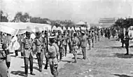 As an ally of Li Hongzhang, Yuan was appointed the commander of the first New Army in 1895. Yuan's training program modernized the army, creating enormous pride, and earning him the loyalty of capable senior officers. By 1901, five of China's seven divisional commanders and most other senior military officers in China were his protégés.[9] The Qing court relied heavily on his army due to the proximity of its garrison to the capital and their effectiveness. Of the new armies that formed part of the Self-Strengthening Movement, Yuan's was the best trained and most effective. His success opened the way for his rise to the top in both military and political sectors.[10]