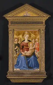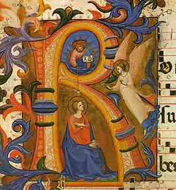 Zanobi di Benedetto di Caroccio degli Strozzi (17 November 1412 – 6 December 1468), normally referred to more simply as Zanobi Strozzi, was an Italian Renaissance painter and manuscript illuminator active in Florence and nearby Fiesole. He was closely associated with Fra Angelico, probably as his pupil, as told by Vasari.[1] He is the same painter as the Master of the Buckingham Palace Madonna.[2] Most of his surviving works are manuscript illuminations but a number of panel paintings have also been attributed to him, including seven altarpieces and six panels with the Virgin and Child,[3] along with some designs for metalwork.