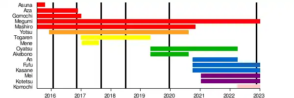 Yotsu Hitomi (一十三四) | Green | Joined August 2015, Left August 2020 |