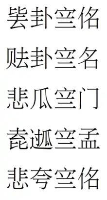- Non-standard Chinese-like characters created via phono-semantic compounds